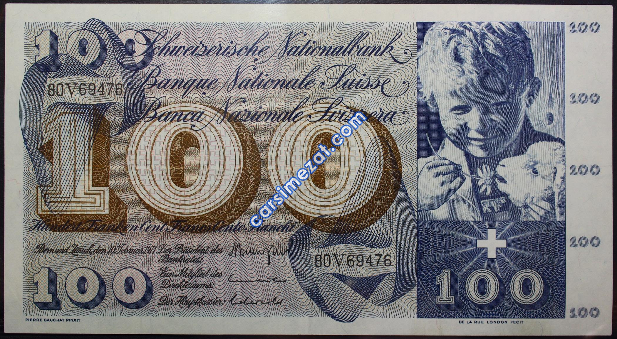 YABANCI KAĞIT İSVİÇRE 100 FRANCS 1957-77 ÇA ++