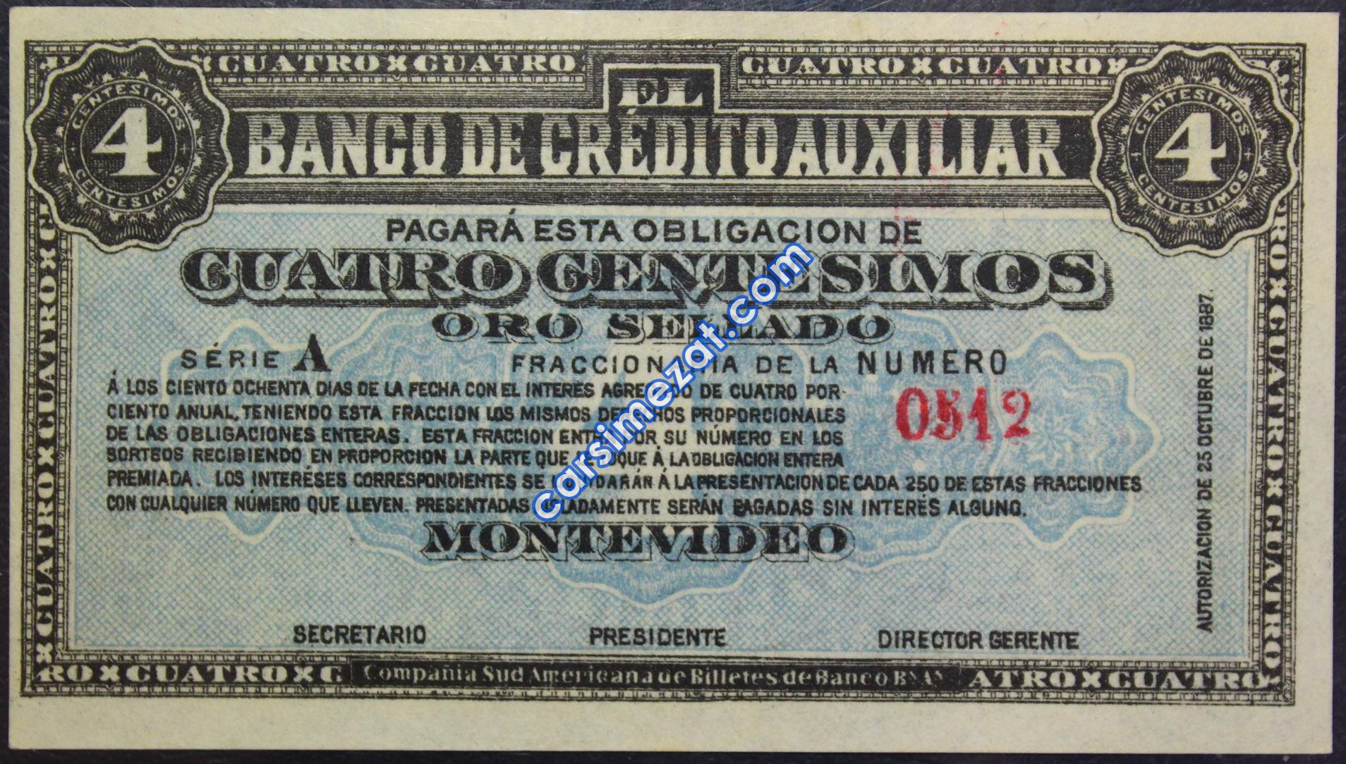 YABANCI KAĞIT URUGUAY 4 CENTESIMO 1887 ÇİL