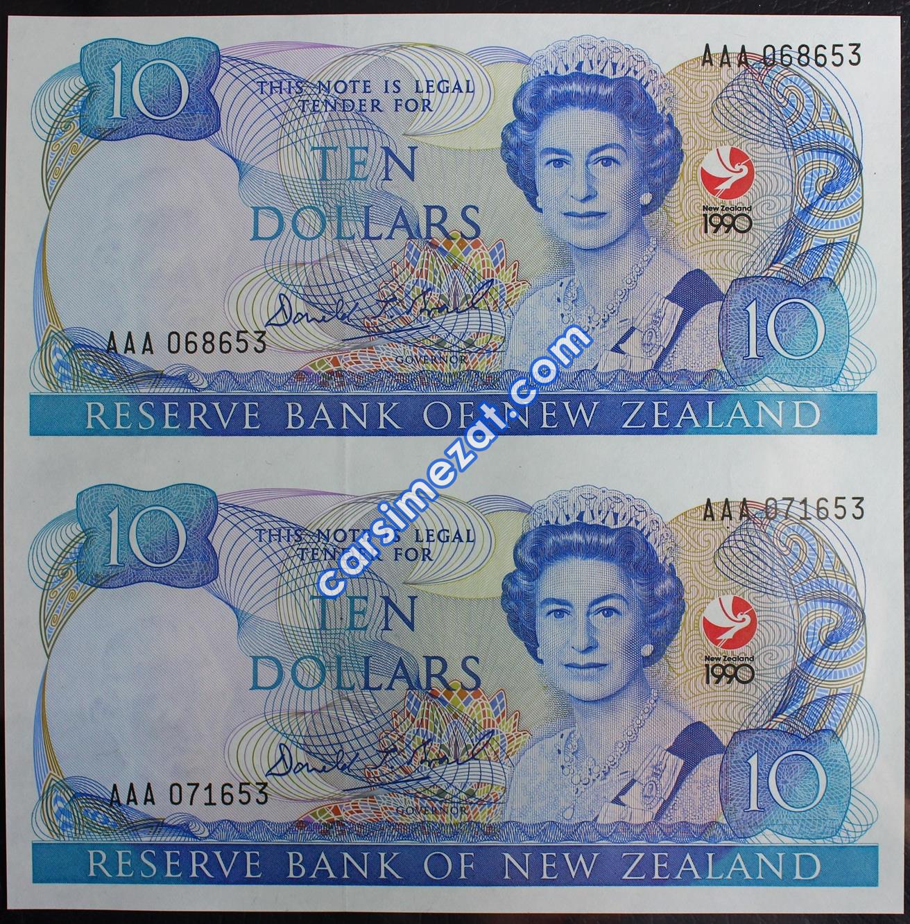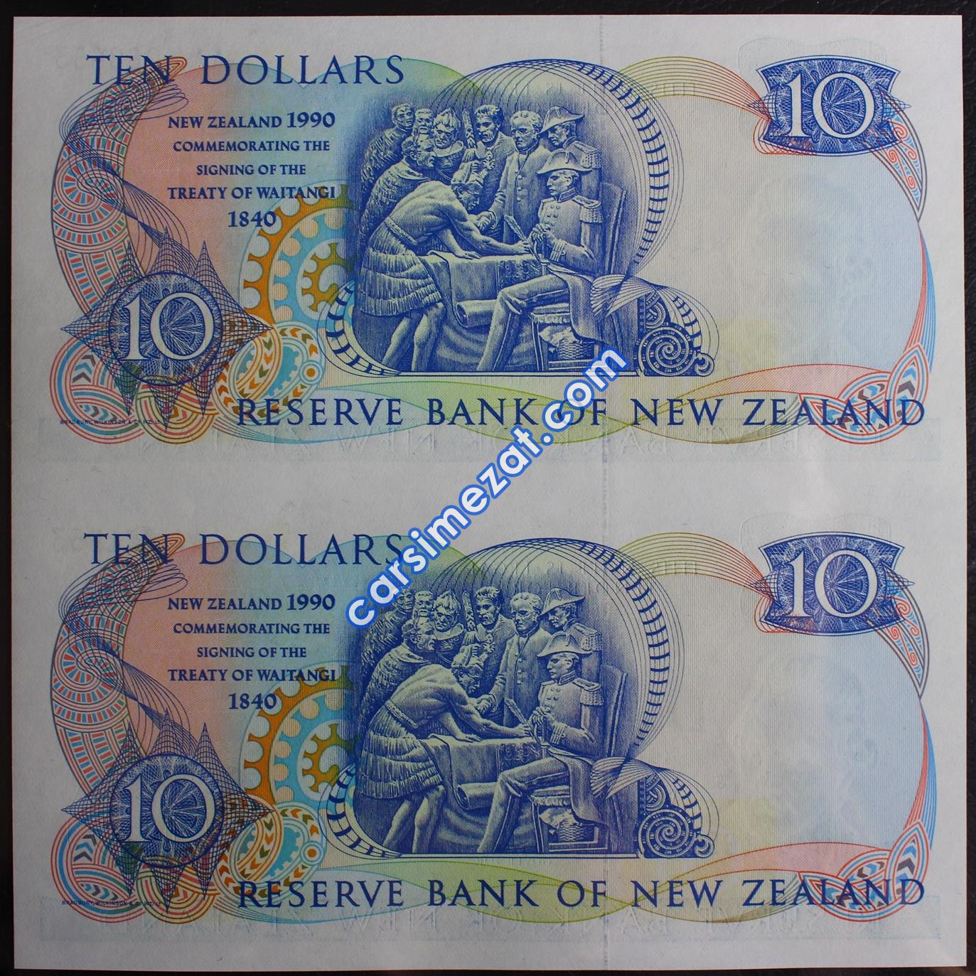 YABANCI KAĞIT YENİ ZELANDA 10 DOLAR 1990 İLK SERİ KESİLMEMİŞ 2 Lİ TABAKA ÇİL