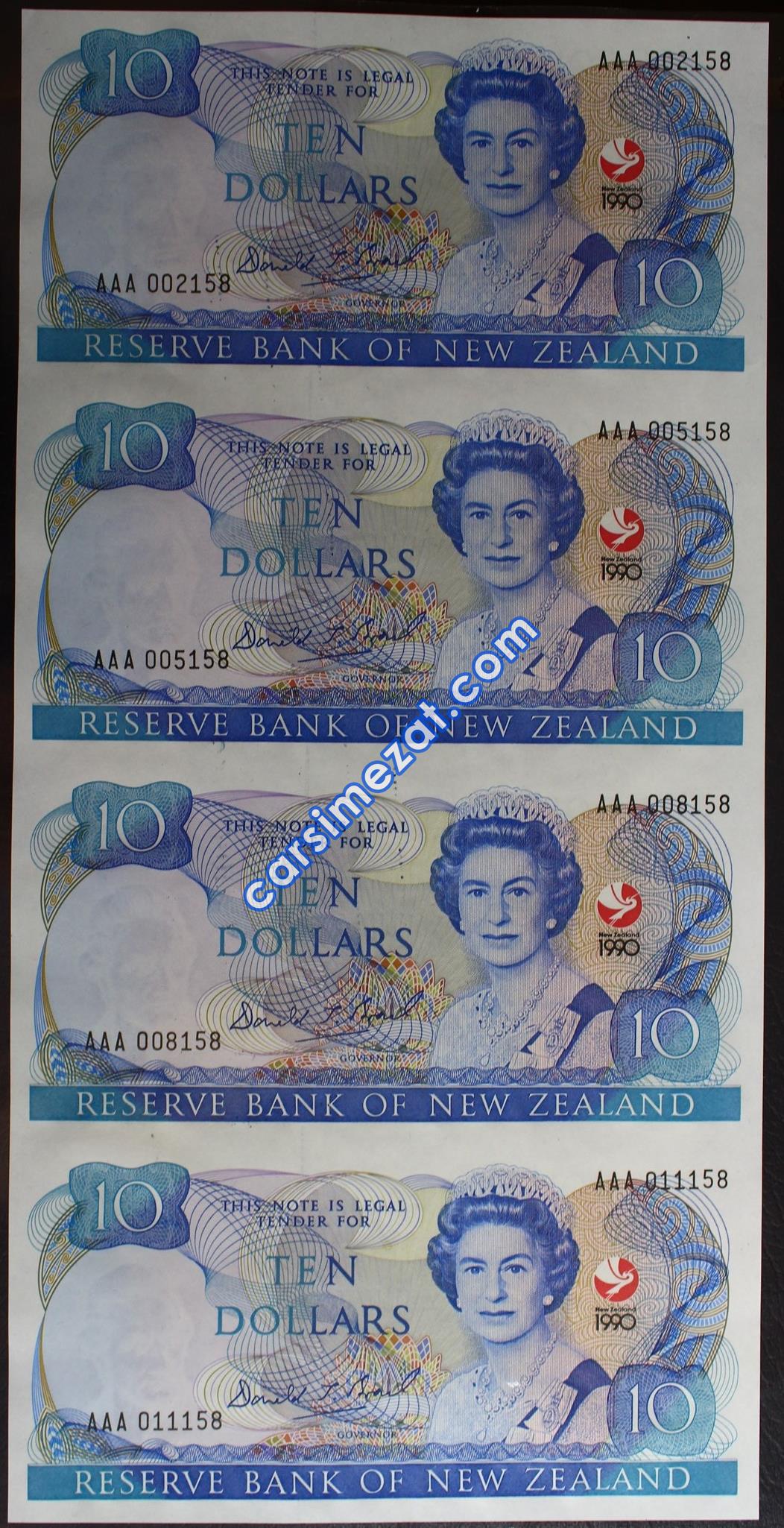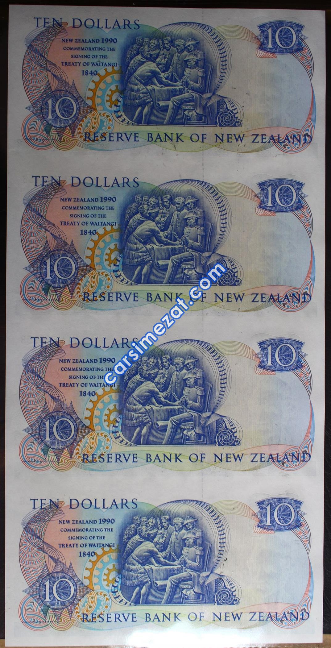 YABANCI KAĞIT YENİ ZELANDA 10 DOLAR 1990 İLK SERİ VE KÜÇÜK NUMARALI KESİLMEMİŞ 4 LÜ TABAKA ÇİL