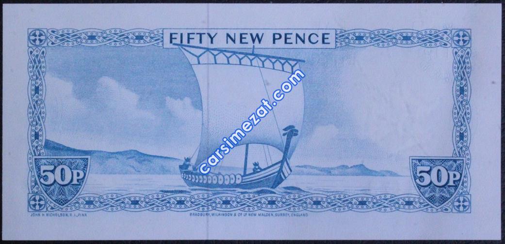 YABANCI KAĞIT ISLE OF MAN 50 NEW PENCE 1972 ÇİL