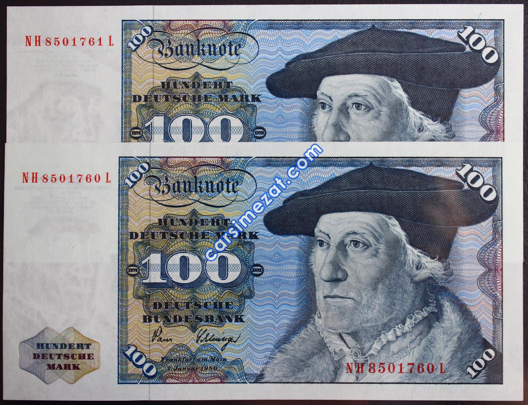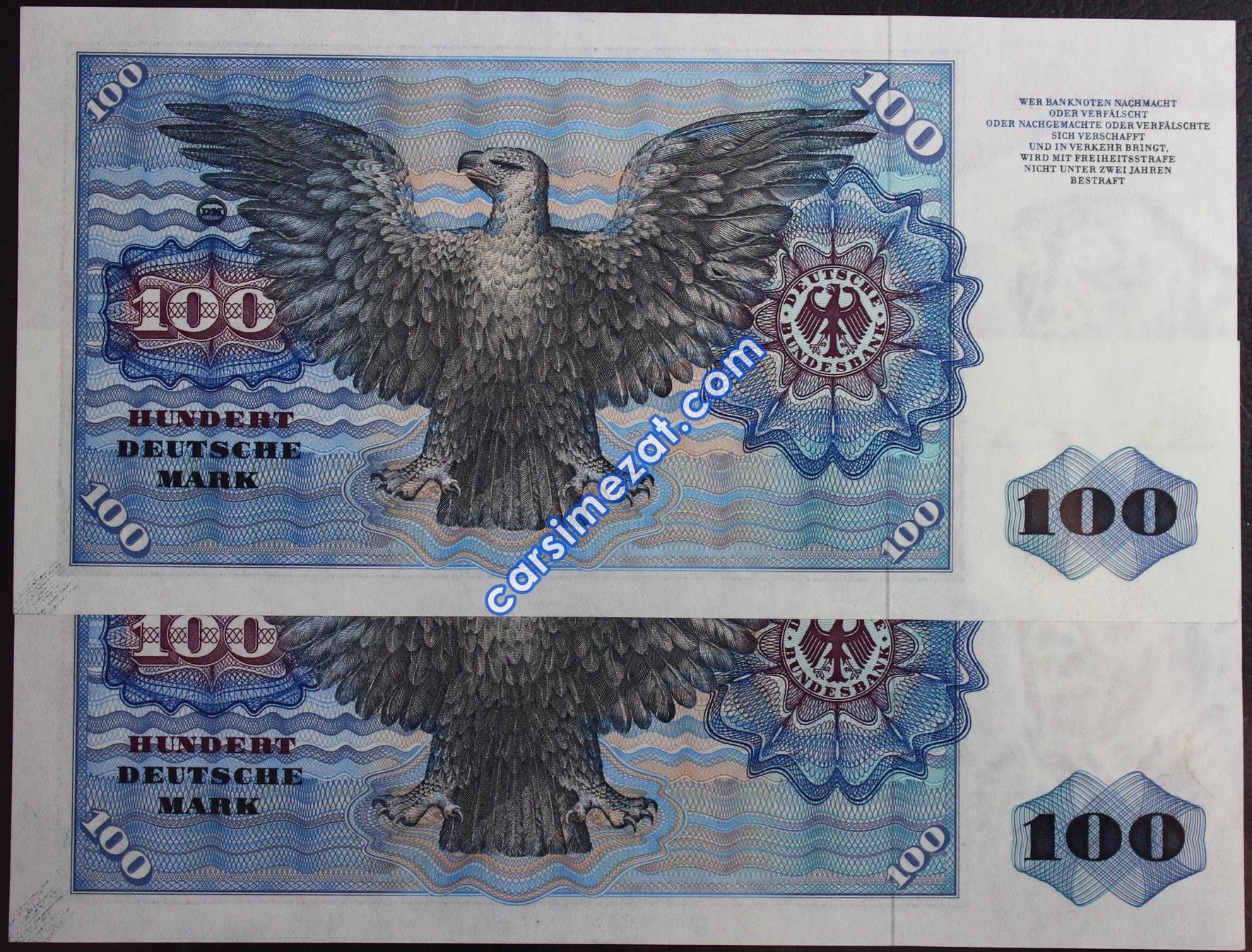 YABANCI KAĞIT ALMANYA 100 MARK 1980 SERİ TAKİPLİ 2 Lİ LOT ÇİL