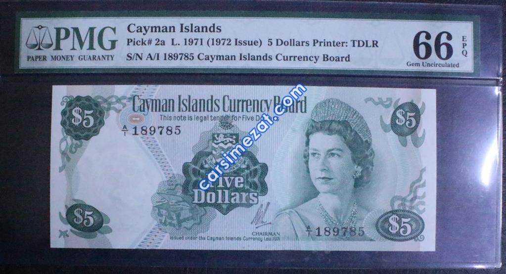 YABANCI KAĞIT CAYMAN ISLANDS 5 DOLAR 1971 PMG 66 ÇİL