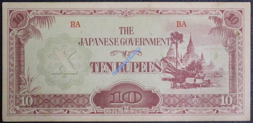 YABANCI KAĞIT JAPON İŞGALİ BURMA 10 RUPEE ÇİL