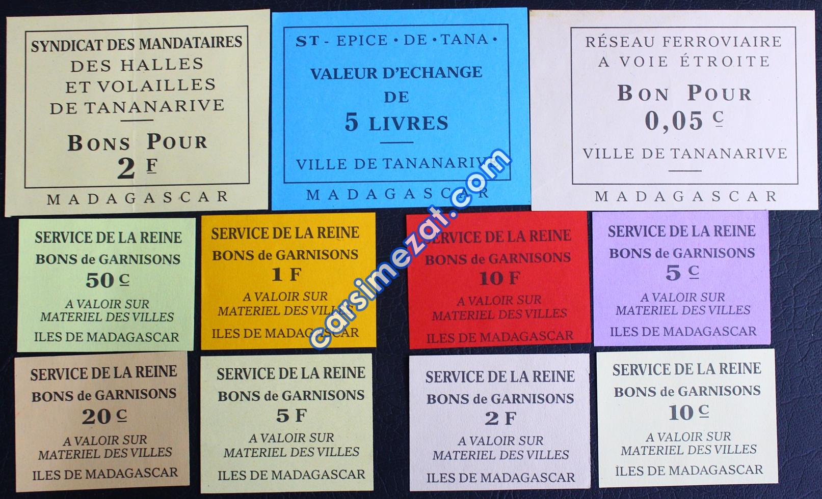 YABANCI KAĞIT MADAGASKAR ŞEHİR ADALARI BİLET LOTU 11 FARKLI VALÖR ÇİL