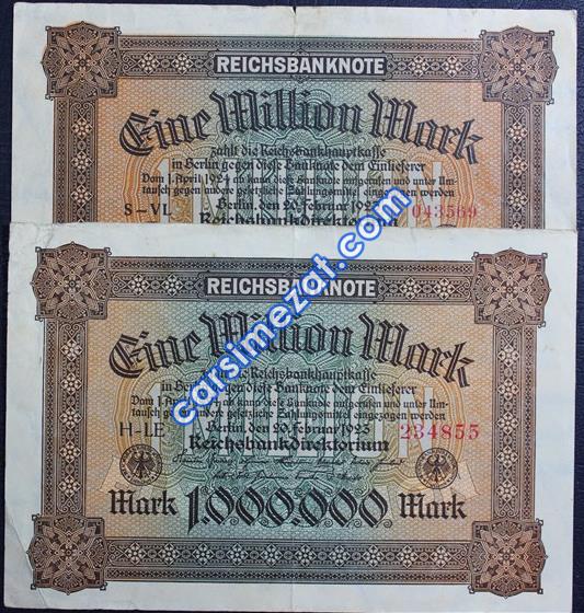 YABANCI KAĞIT ALMANYA 1.000.000 MARK 1923 2 Lİ LOT ÇT