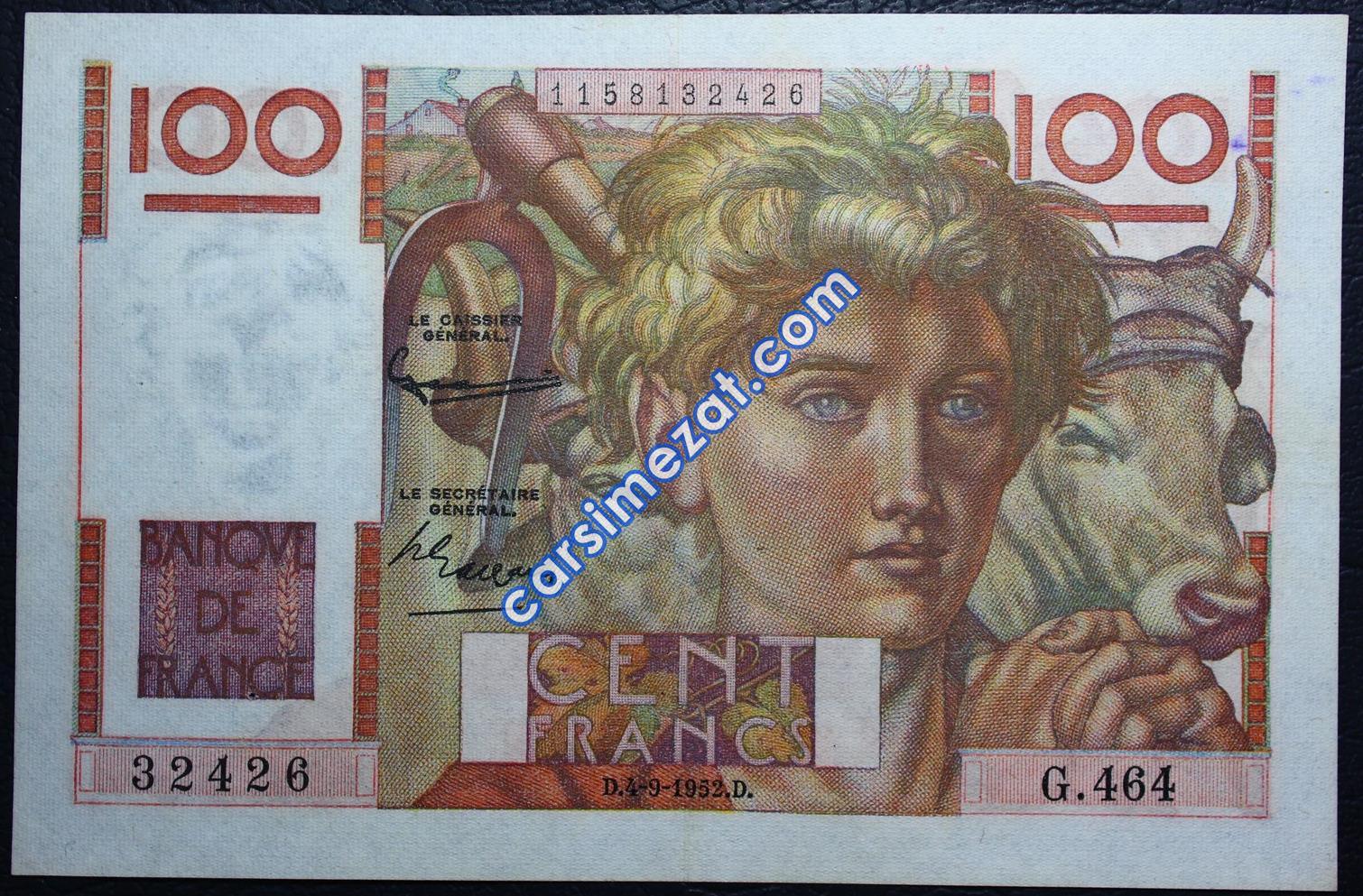 YABANCI KAĞIT FRANSA 100 FRANCS 1952 ÇA