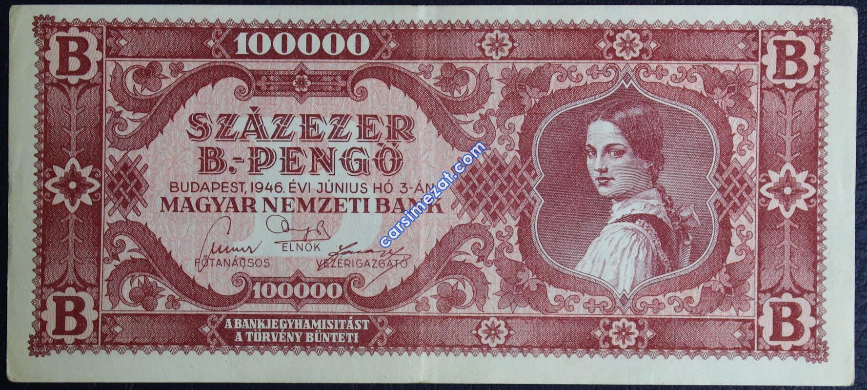 YABANCI KAĞIT MACARİSTAN 100.000 B-PENGÖ 1946 ÇÇT