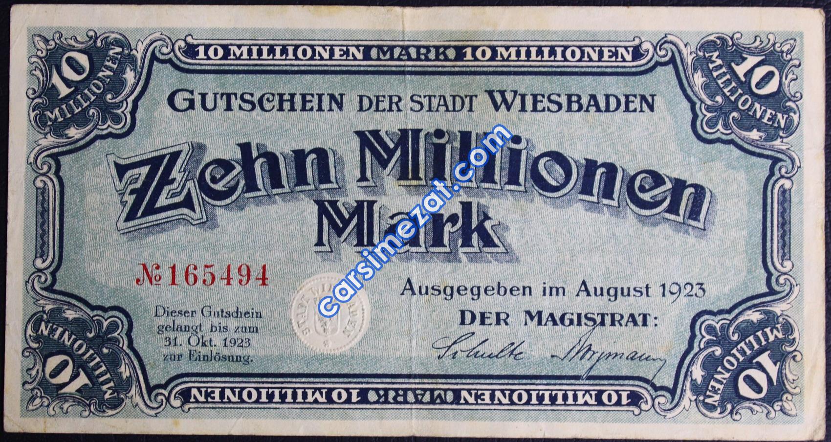 YABANCI KAĞIT ALMANYA WEIESBADEN 10 MİLYON MARK 1923 ÇT
