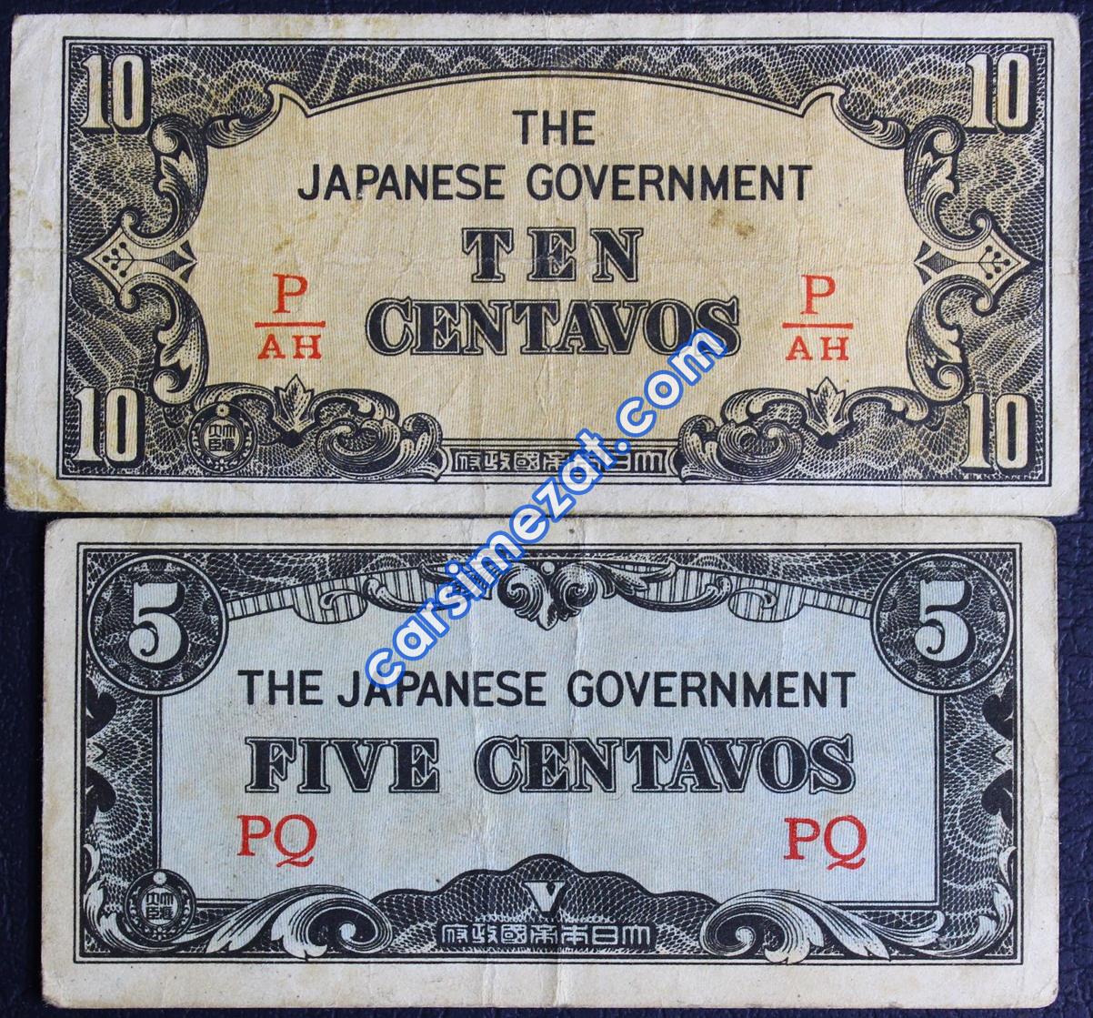 YABANCI KAĞIT JAPON İŞGAL 5-10 CENTAVO 1945 2 Lİ LOT TEMİZ-ÇT