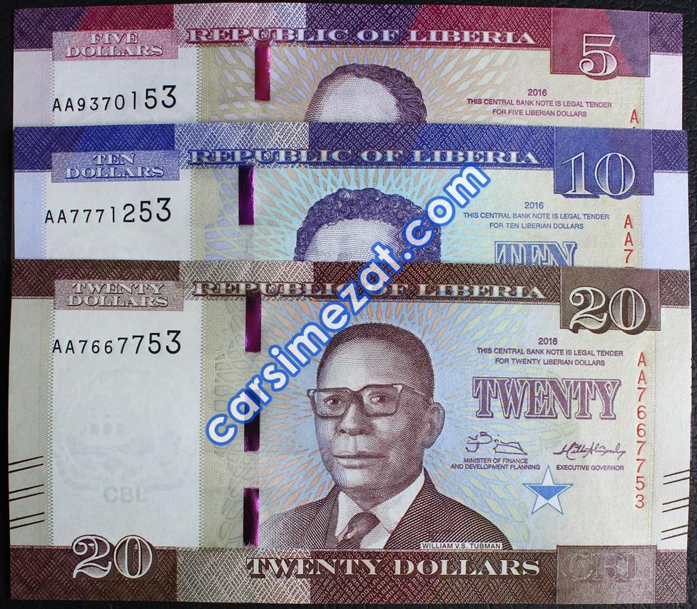 YABANCI KAĞIT LİBERYA 5-10-20 DOLAR 2016 3 LÜ SET ÇİL