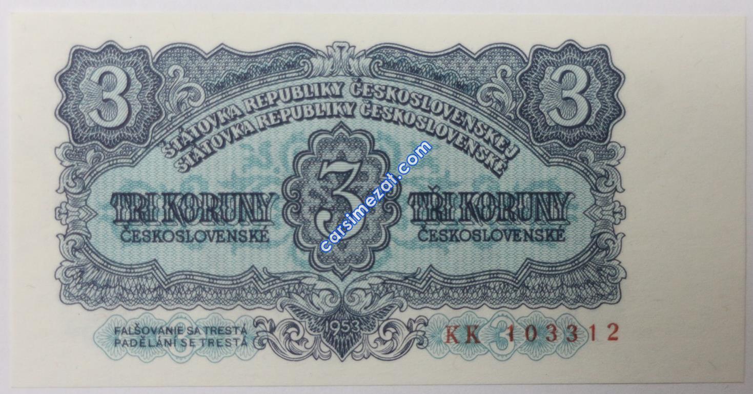 YABANCI KAĞIT ÇEKOSLOVAKYA 3 KORUN 1953 ÇİL