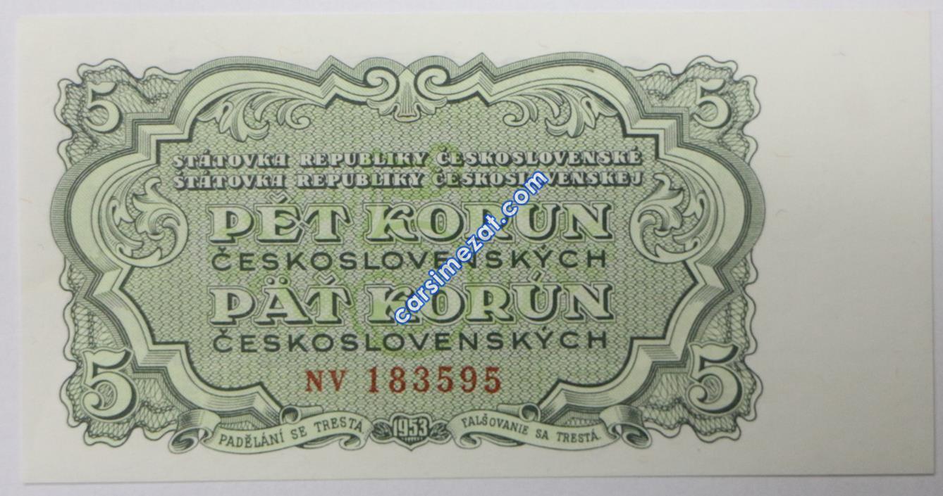 YABANCI KAĞIT ÇEKOSLOVAKYA 5 KORUN 1953 ÇİL