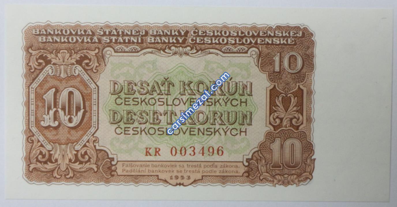 YABANCI KAĞIT ÇEKOSLOVAKYA 10 KORUN 1953 ÇİL