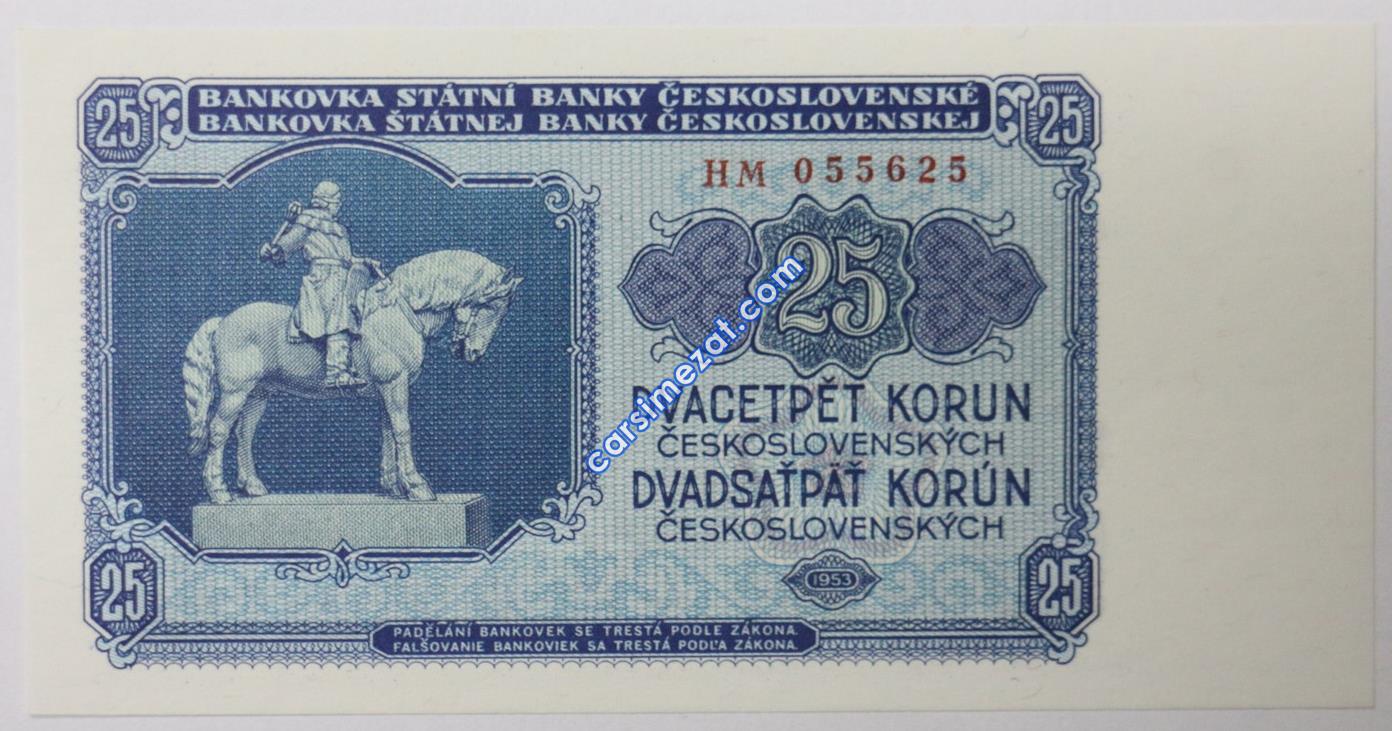 YABANCI KAĞIT ÇEKOSLOVAKYA 25 KORUN 1953 ÇİL