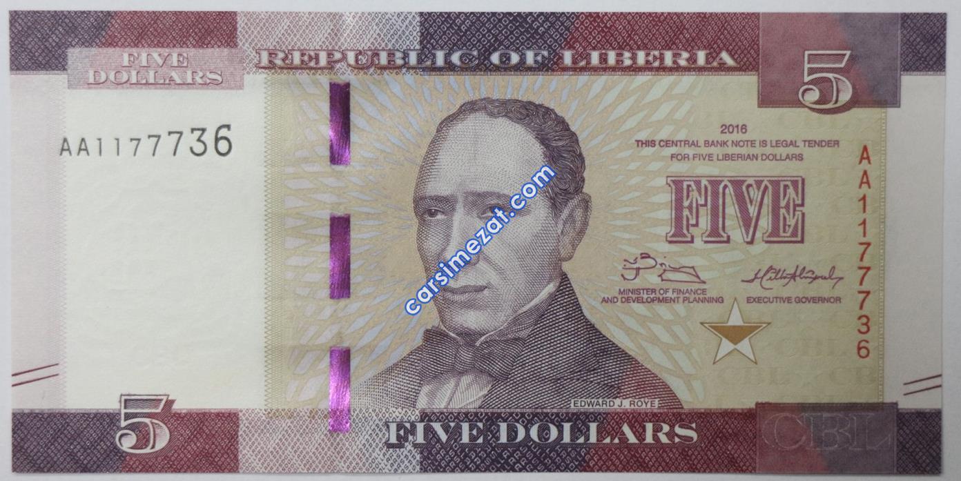YABANCI KAĞIT LİBERİA 5 DOLAR 2016 ÇİL