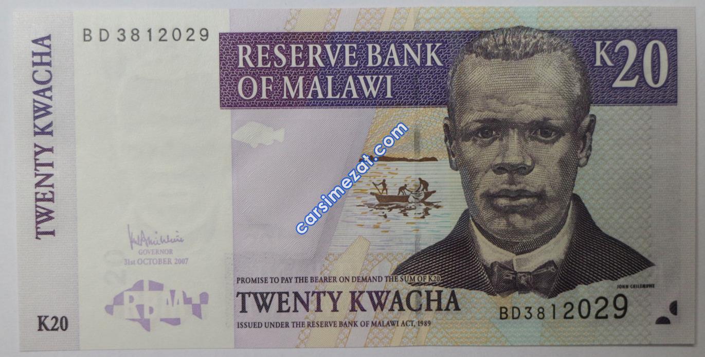 YABANCI KAĞIT MALAWİ 20 KWACHA 1989 ÇİL
