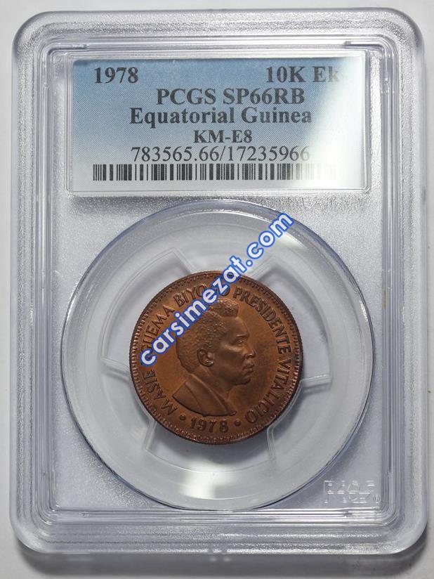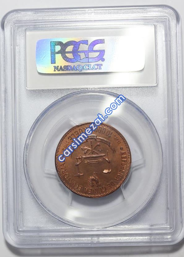 YABANCI MADENİ GÜMÜŞ BRONZ GİNE 10.000 EKULA 1978 ÇİFTE BASKI ÇOK NADİR PCGS 66 ÇİL