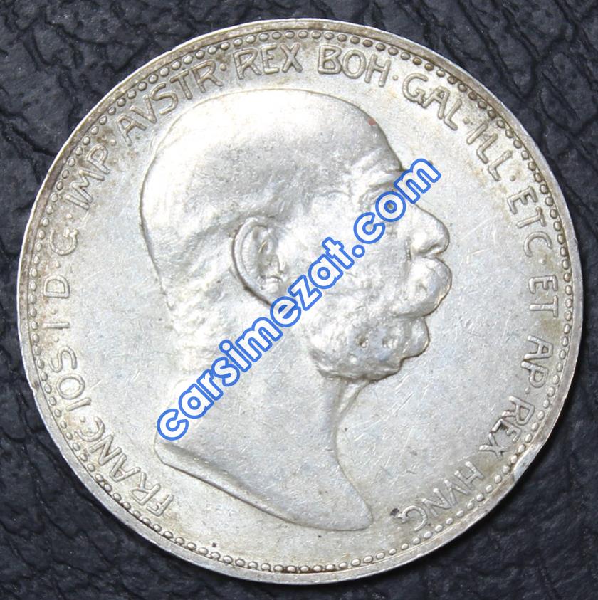 YABANCI MADENİ GÜMÜŞ AVUSTURYA HABSBURG 1 CORONA 1908 ÇA