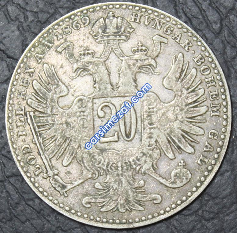 YABANCI MADENİ GÜMÜŞ AVUSTURYA HABSBURG 20 KREUZER 1869 ÇÇT