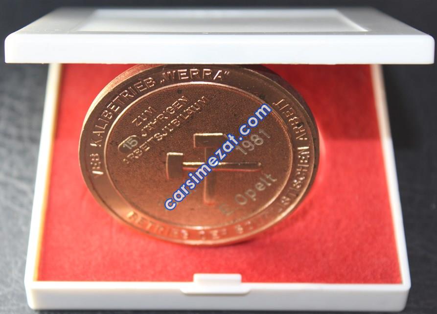 YABANCI MADENİ ALMANYA HATIRA MADALYON 1981 R=5 CM. 52 GRAM KUTUSUNDA ÇİL