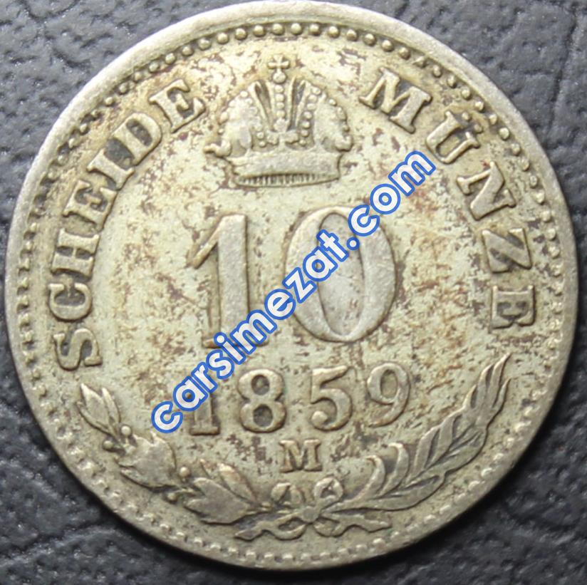 YABANCI MADENİ GÜMÜŞ AVUSTURYA HABSBURG 10 KREUZER 1859 ÇT
