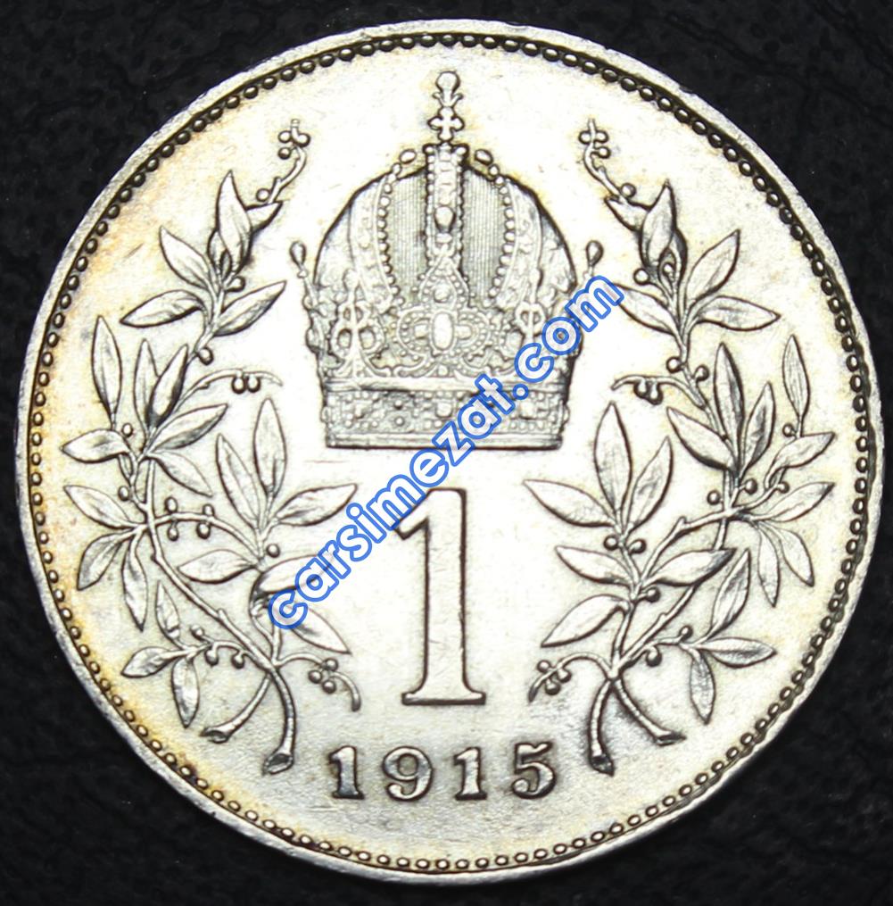 YABANCI MADENİ GÜMÜŞ AVUSTURYA HABSBURG 1 CORONA 1915 ÇA