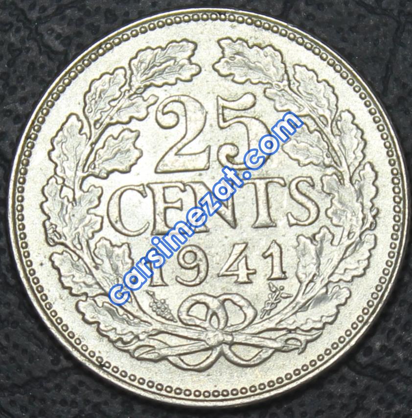 YABANCI MADENİ GÜMÜŞ HOLLANDA 25 CENT 1941 ÇA