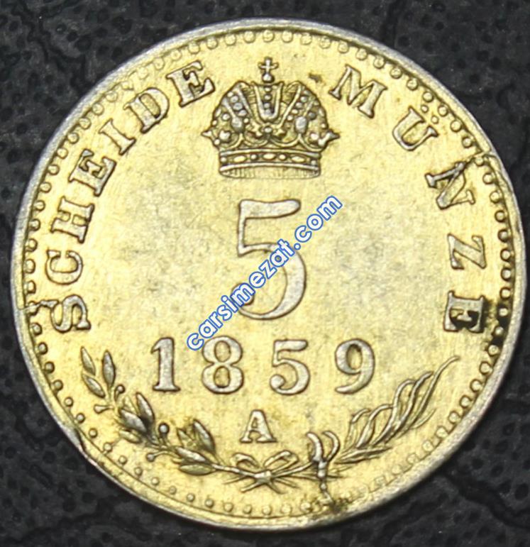 YABANCI MADENİ GÜMÜŞ AVUSTURYA HABSBURG 5 KREUZER 1859 ÇÇT