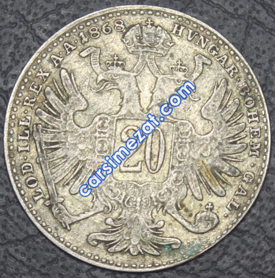 YABANCI MADENİ GÜMÜŞ AVUSTURYA HABSBURG 20 KREUZER 1868 ÇÇT