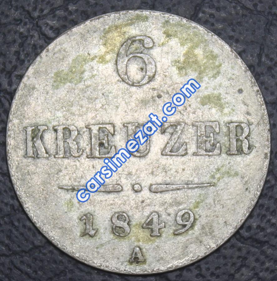YABANCI MADENİ GÜMÜŞ AVUSTURYA HABSBURG 6 KREUZER 1849 ÇT