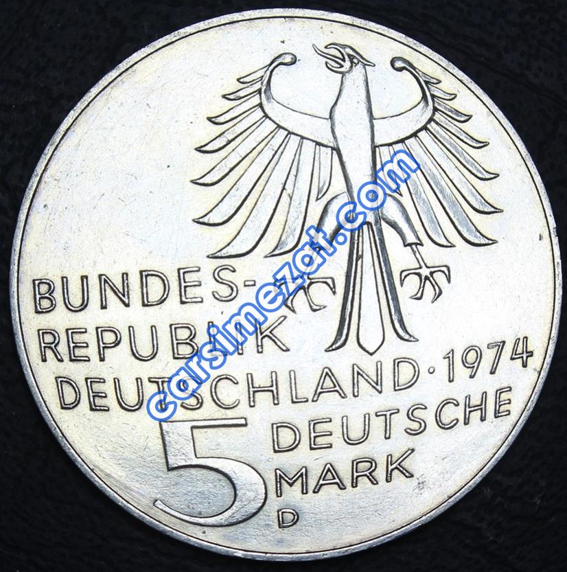 YABANCI MADENİ GÜMÜŞ ALMANYA HATIRA 5 MARK 1974 11,2 GRAM ÇA