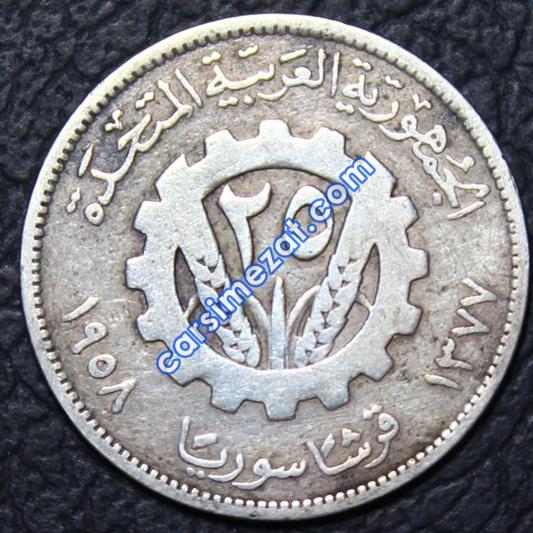 YABANCI MADENİ GÜMÜŞ SURİYE 25 PIASTRE 1958 ÇÇT