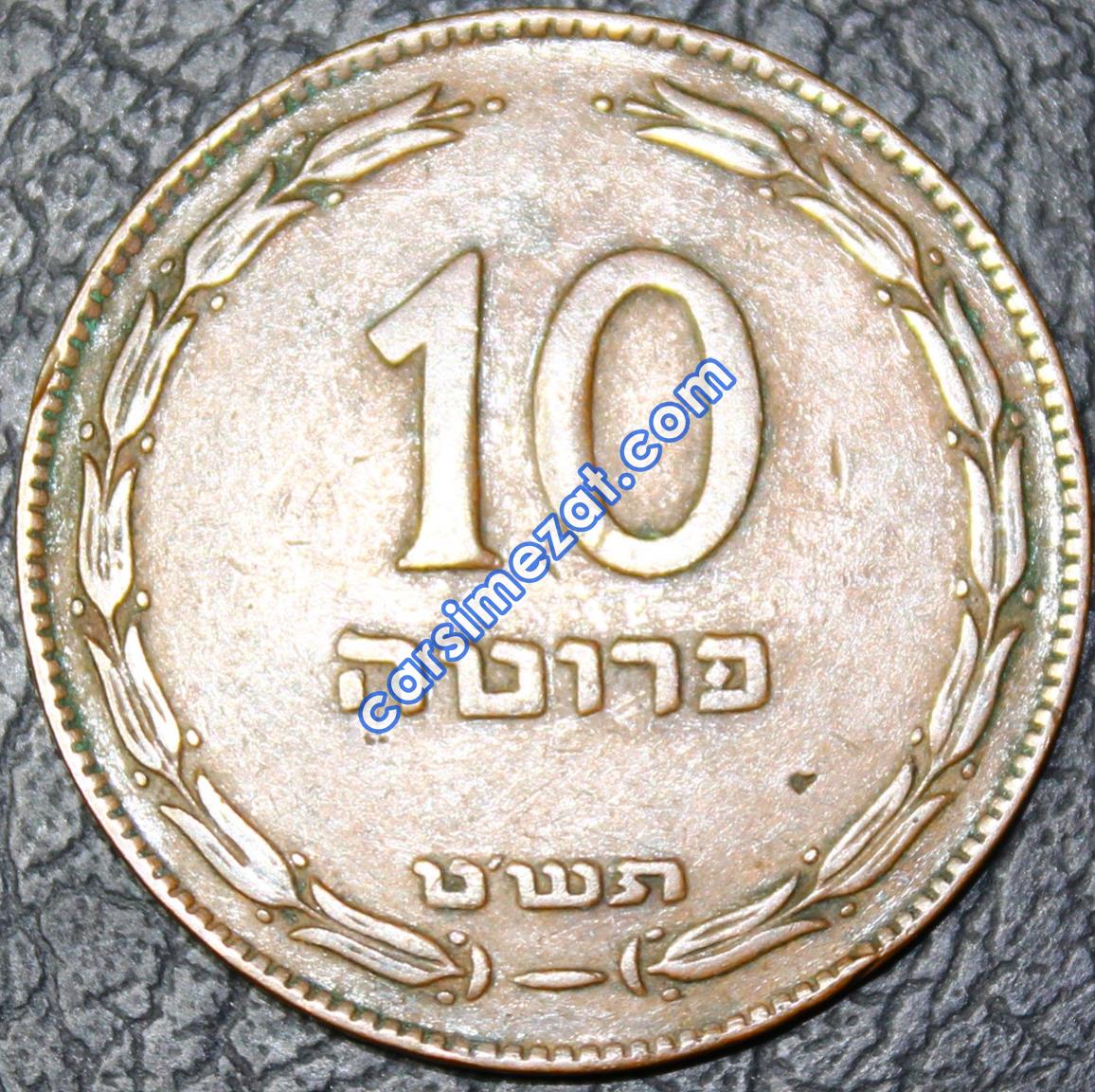 YABANCI MADENİ İSRAİL 10 PRUTA 1949 ÇÇT