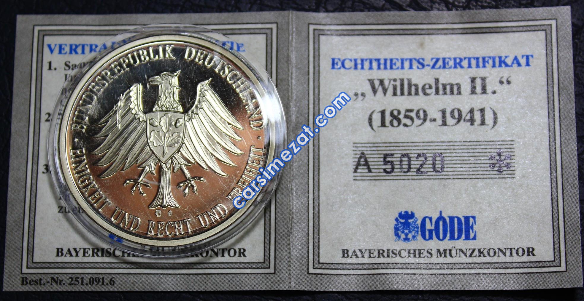 YABANCI MADENİ ALMANYA HATIRA WILHELM 1859-1941 SERTİFİKALI ÇİL