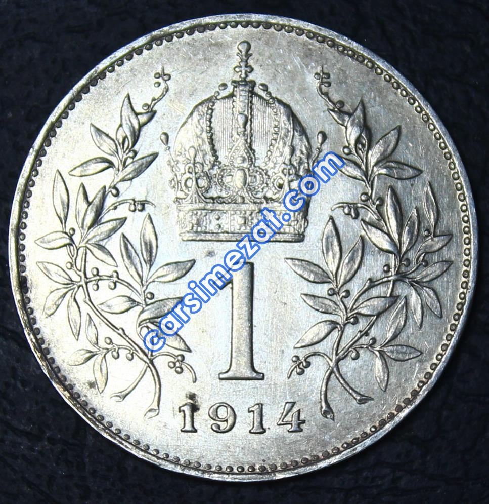 YABANCI MADENİ GÜMÜŞ AVUSTURYA 1 CORONA 1914 ÇA-ÇİL
