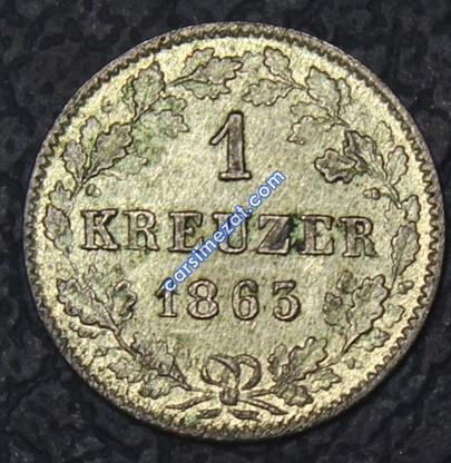 YABANCI MADENİ GÜMÜŞ WÜRTTEMBERG KRALLIĞI 1 KREUZER 1863 ÇİL