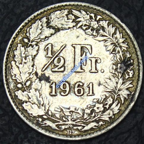 YABANCI MADENİ GÜMÜŞ İSVİÇRE 1/2 FRANC 1961 ÇÇT