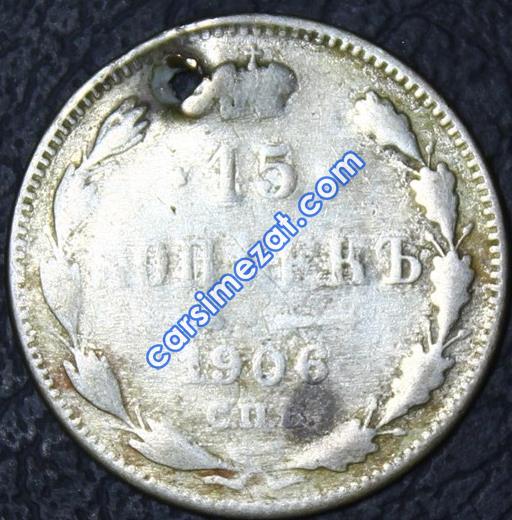 YABANCI MADENİ GÜMÜŞ RUSYA 15 KOPEEK 1906 HALİYLE