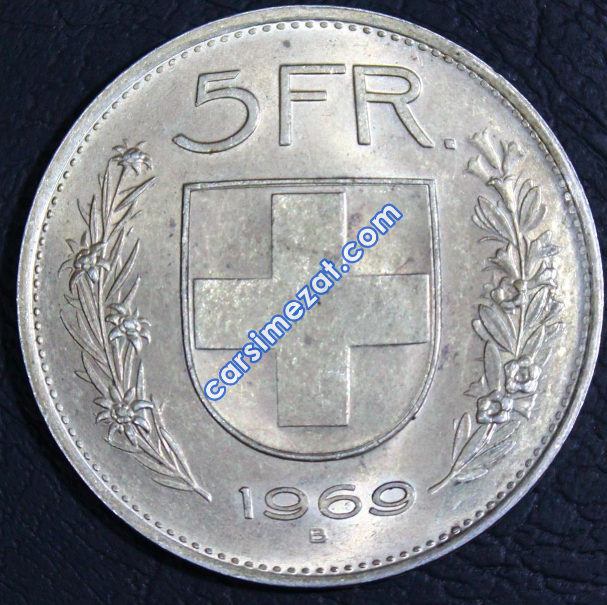 YABANCI MADENİ GÜMÜŞ İSVİÇRE 5 FRANCS 1969 ÇİL