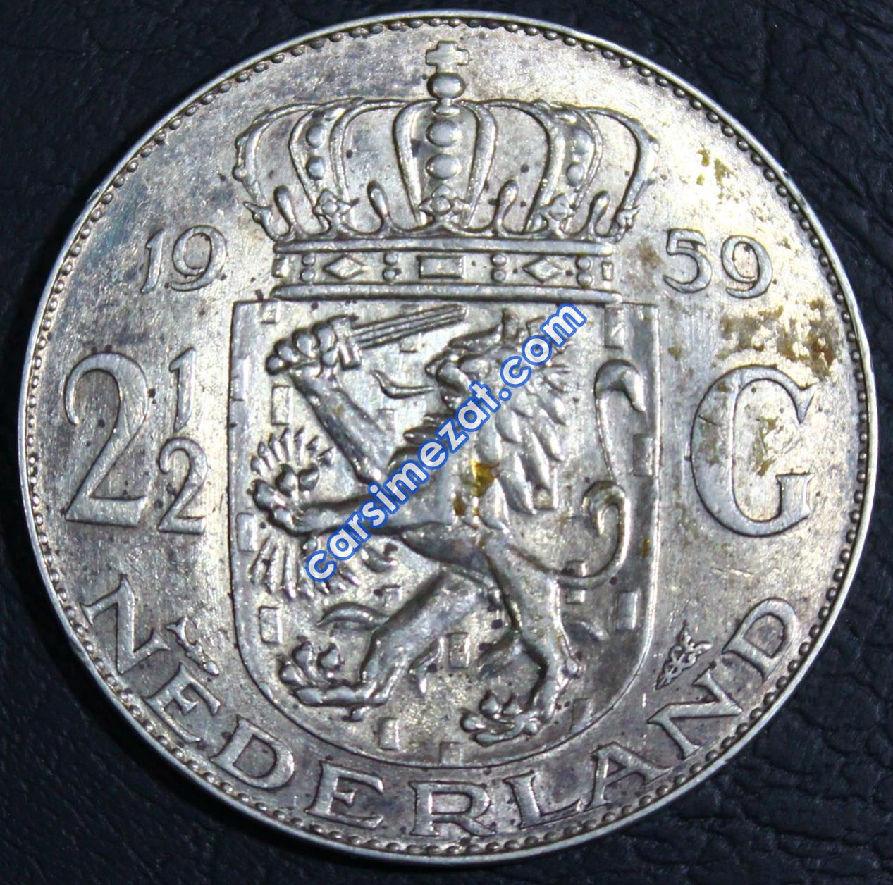 YABANCI MADENİ GÜMÜŞ HOLLANDA 2,5 GULDEN 1959 ÇA