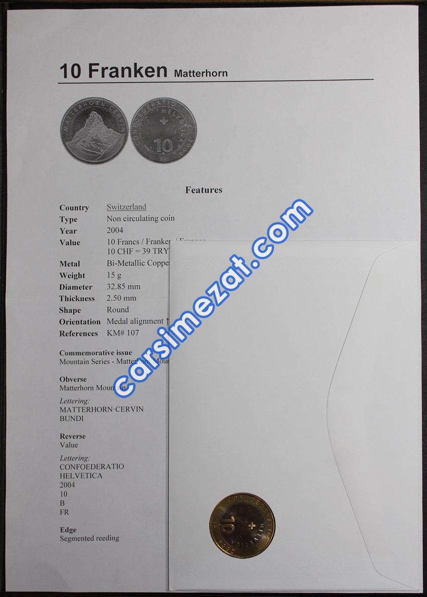 YABANCI MADENİ İSVİÇRE İLK GÜN ZARFI HATIRA PARALI SERTİFİKALI ÇİL