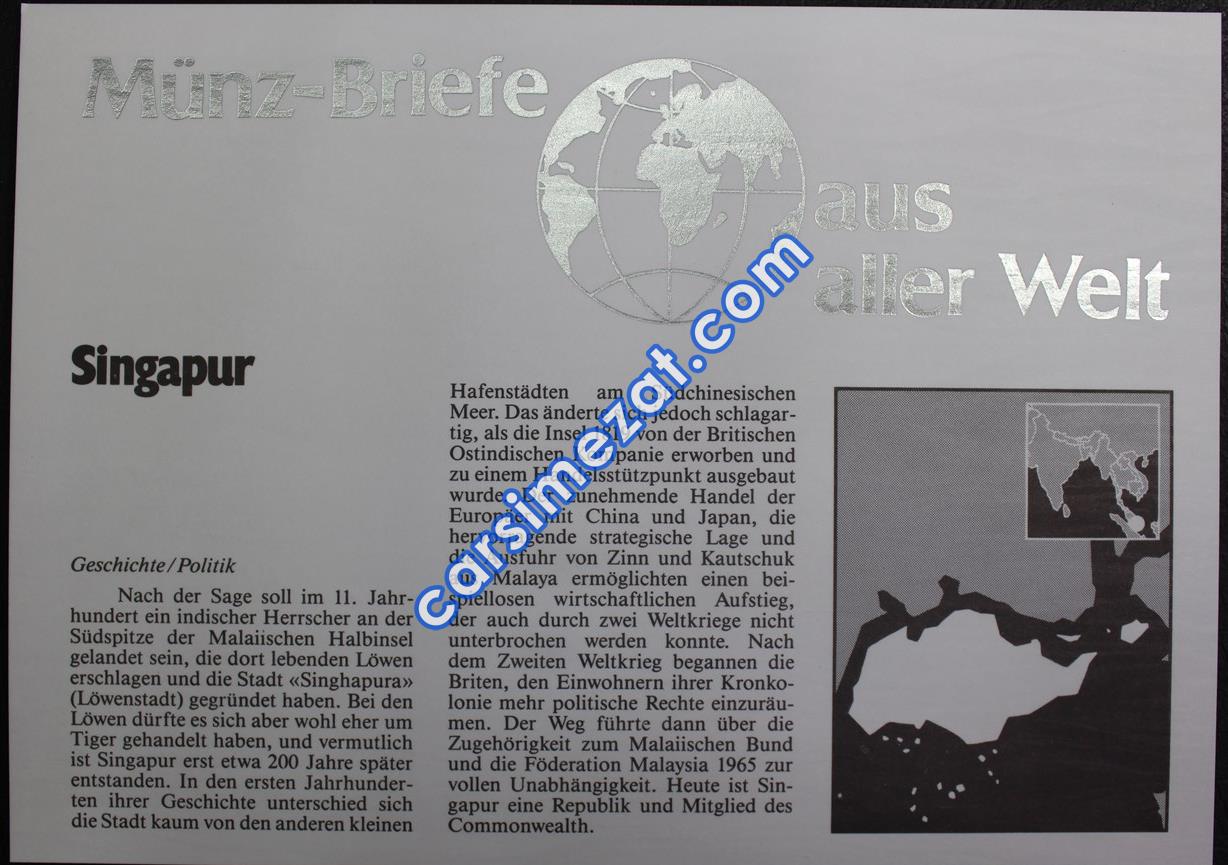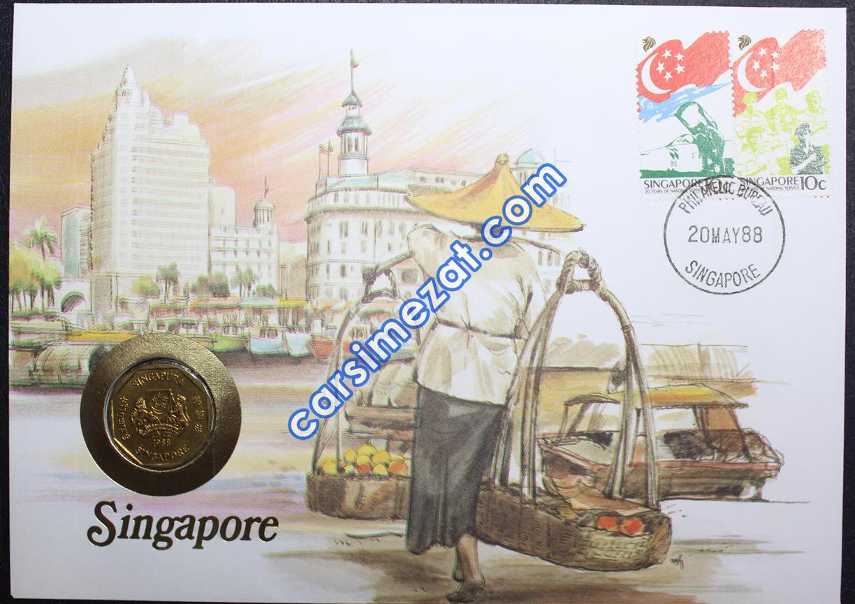 YABANCI MADENİ SİNGAPUR İLK GÜN ZARFI HATIRA PARALI SERTİFİKALI ÇİL