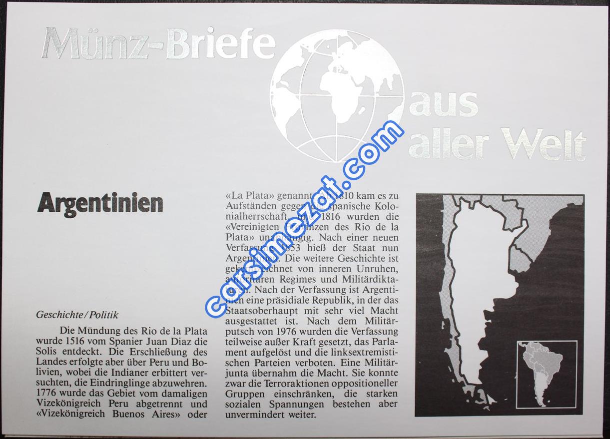 YABANCI MADENİ ARJANTİN İLK GÜN ZARFI HATIRA PARALI SERTİFİKALI ÇİL