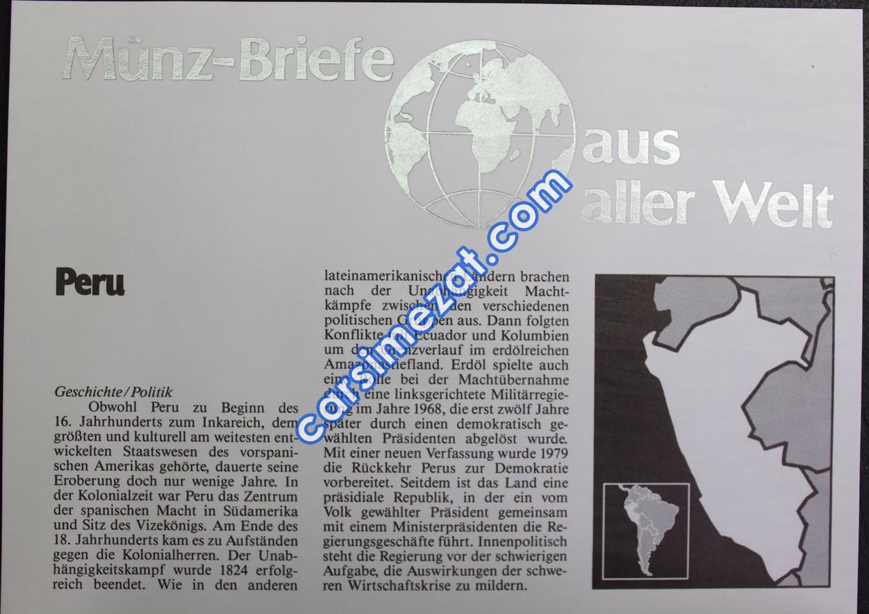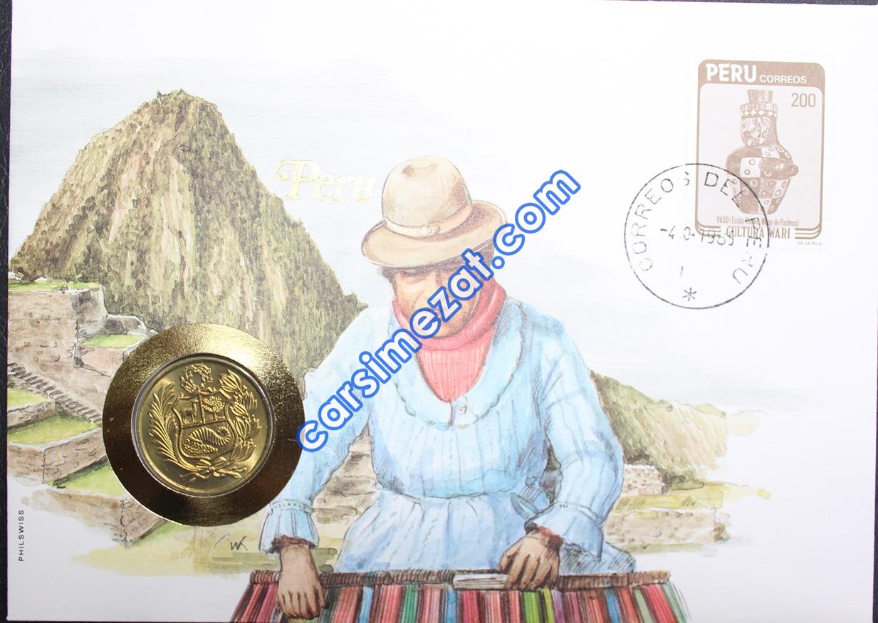 YABANCI MADENİ PERU İLK GÜN ZARFI HATIRA PARALI SERTİFİKALI ÇİL