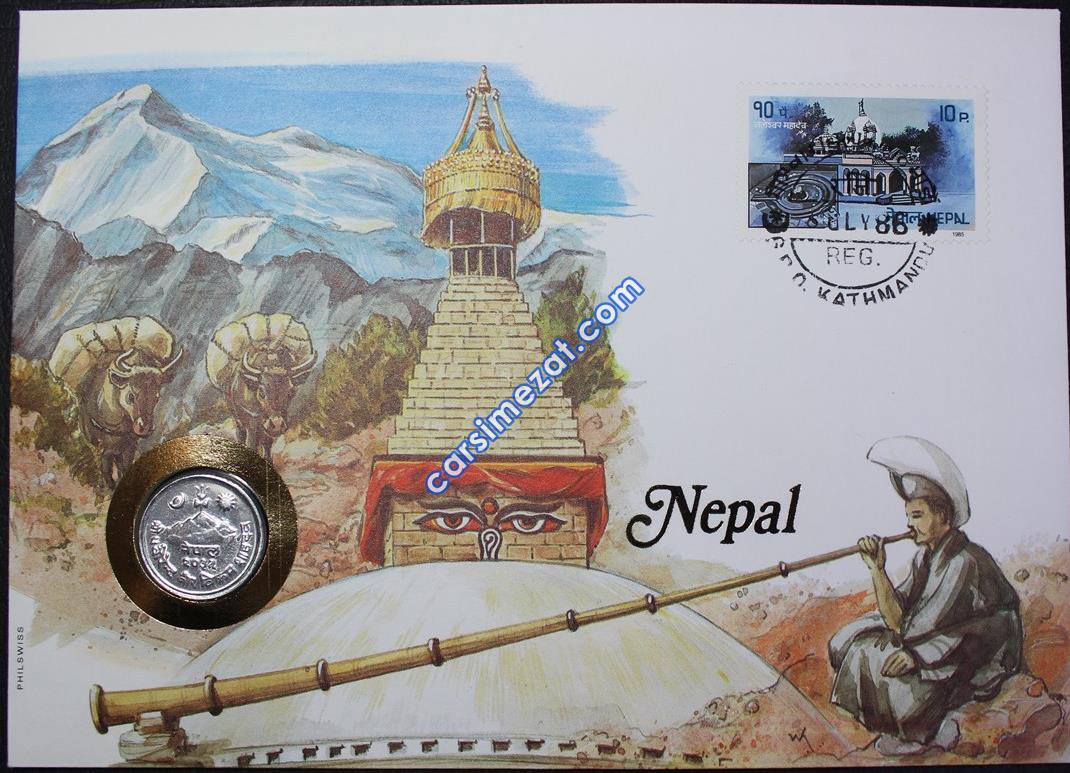 YABANCI MADENİ NEPAL İLK GÜN ZARFI HATIRA PARALI 1983 SERTİFİKALI ÇİL