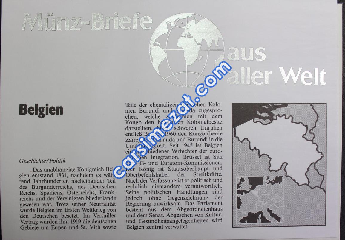 YABANCI MADENİ BELÇİKA İLK GÜN ZARFI HATIRA PARALI SERTİFİKALI ÇİL