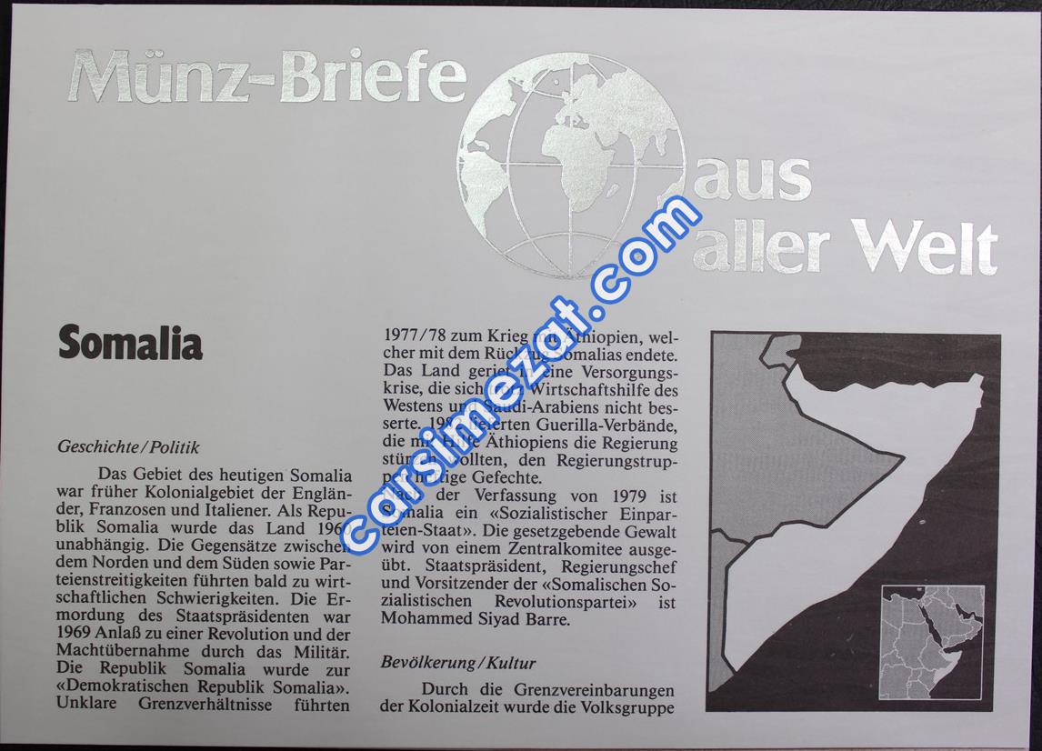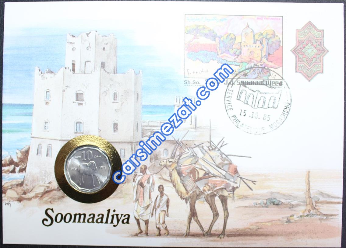 YABANCI MADENİ SOMALİ İLK GÜN ZARFI HATIRA PARALI SERTİFİKALI ÇİL