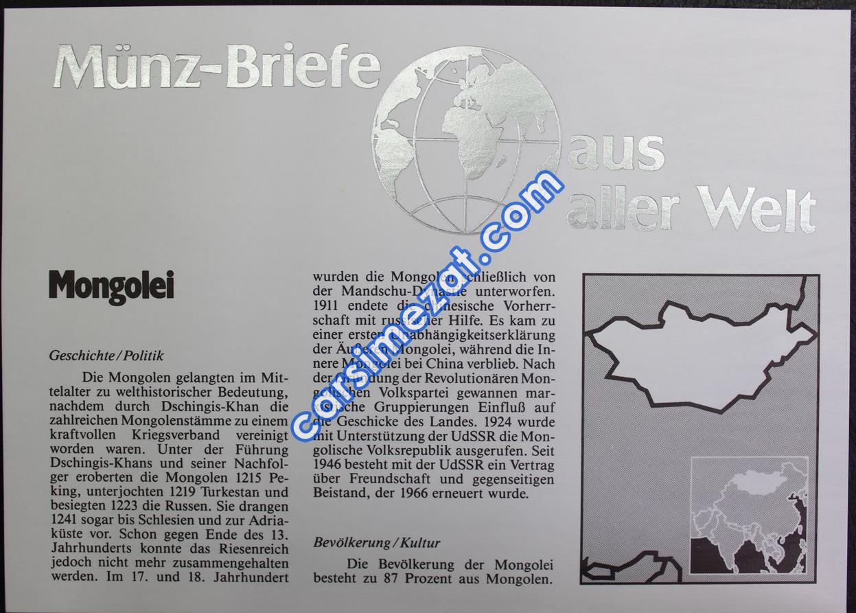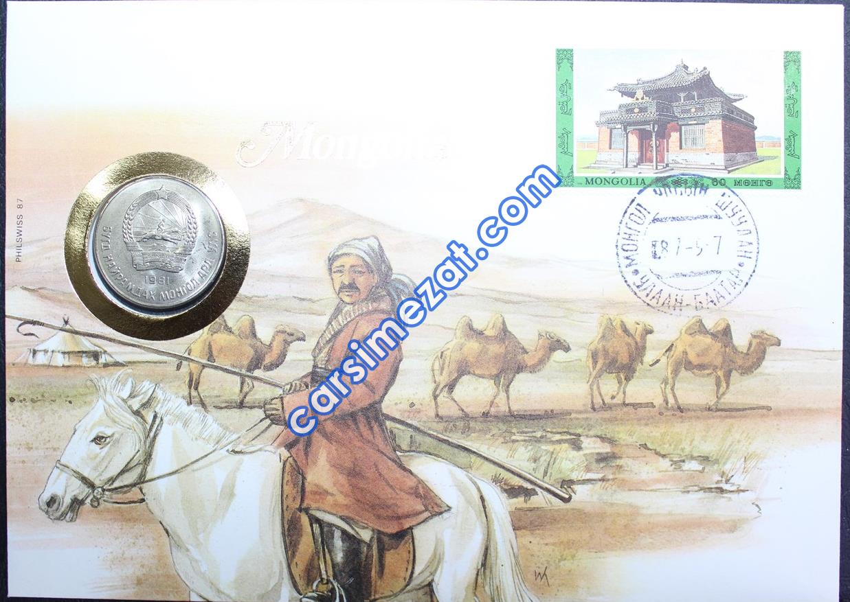 YABANCI MADENİ MOĞOLİSTAN İLK GÜN ZARFI HATIRA PARALI SERTİFİKALI ÇİL