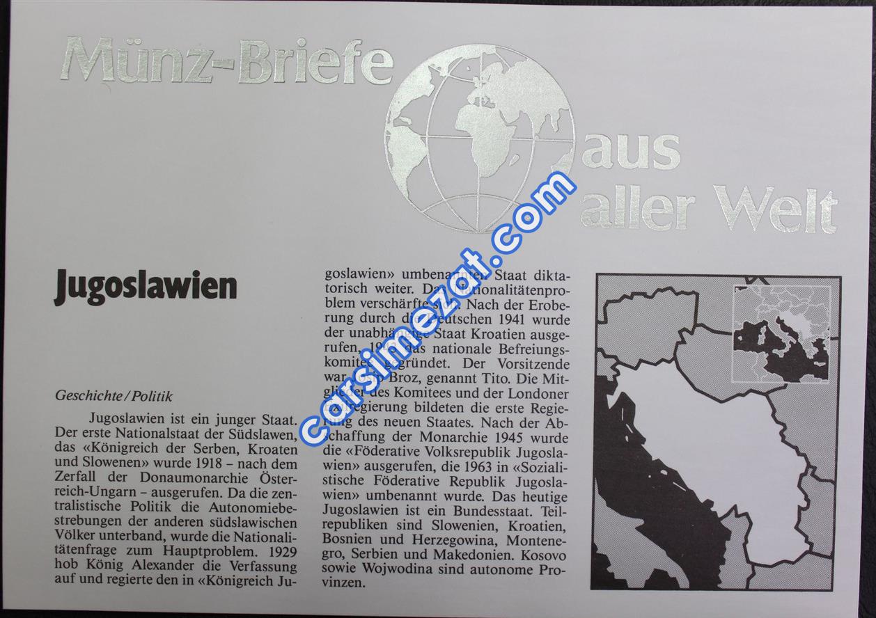 YABANCI MADENİ YUGOSLAVYA İLK GÜN ZARFI HATIRA PARALI SERTİFİKALI ÇİL